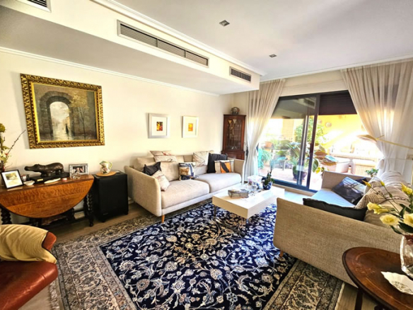 Positioned on the first floor with elevator access, this generously sized 114m² apartment with a 48m2 garden terrace feels more like a small villa than a flat. It features: 3 spacious bedrooms, including a private en-suite to the main bedroom A fully fitted separate kitchen central hallways connecting all rooms Large L-shaped living and dining room with 3 patio doors leading to a charming garden terrace expansive 48m² wrap-around garden terrace overlooking the communal gardens. The garden terrace is great if you want to have a BBQ or to dine outside and also very convenient if you have pets as it is totally private and very secure. The light-filled layout enhances comfort and practicality, making it ideal for year-round residential living.