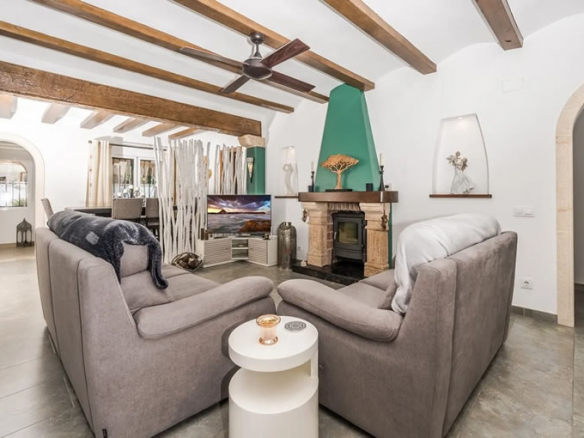 Features: South orientation. Renovated. Fireplace/wood burner. Central heating. Hot/cold air conditioning. Ceiling fans. Fitted wardrobes. BBQ/summer kitchen. Private pool. Low maintenance garden. Naya. Panoramic & Montgo views. Covered terrace. Double glazing. Storeroom. Electric gate. Carport. Alarm system