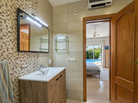 The property can be entered by either the large enclosed naya space or by the utility space to the rear of the property. On entering the property you are greeted with lots of natural light and space. From the Naya entrance you enjoy views of the pool area from here you move through to a fully fitted kitchen with arched seating space off the kitchen there is a utility space. From the utility space, you have direct access out to the garden and the recently renovated additional guest bedroom and ensuite. From the kitchen, this then leads into a large open-plan living / dining space. To the right of the main living space is a hallway that leads to 3 double bedrooms and 2 bathrooms, with an en-suite bathroom in the main bedroom. All bedrooms benefit from fitted wardrobes, newly fitted air-conditioning units, mosquito blinds and roller blinds on all windows.
