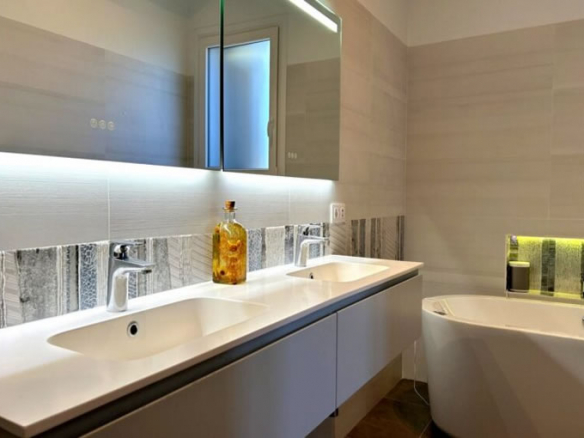 Step through the front door and you’re greeted by a bright, welcoming entry hall that sets the stage for the rest of the home. To your right, the heart of the villa unfolds: a magnificent open-plan living and dining area, anchored by a cozy fireplace for those cooler winter evenings. The kitchen is a chef’s dream sleek, modern, and fully equipped, with a handy utility room tucked away to keep the main space clutter-free. But the real “wow” factor? The massive “L” shaped Naya. Whether you’re hosting a summer dinner party or enjoying a quiet morning coffee, the views over the immaculately landscaped gardens are nothing short of breathtaking. Thanks to the stylish glass curtains, this space becomes an all-season haven open them up to catch the breeze in July, or close them in January to soak up the sun in total warmth.