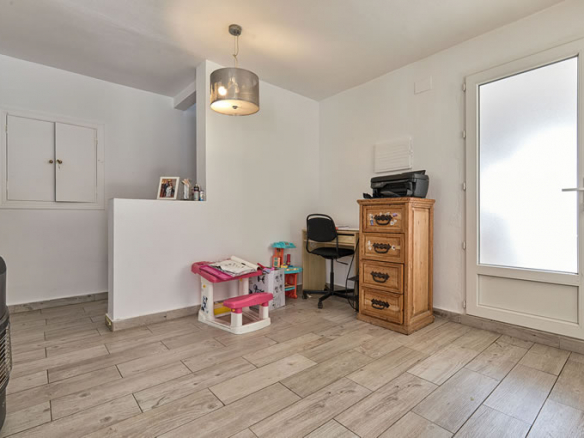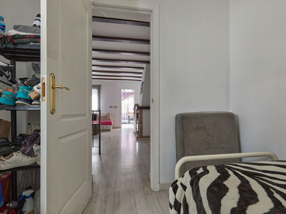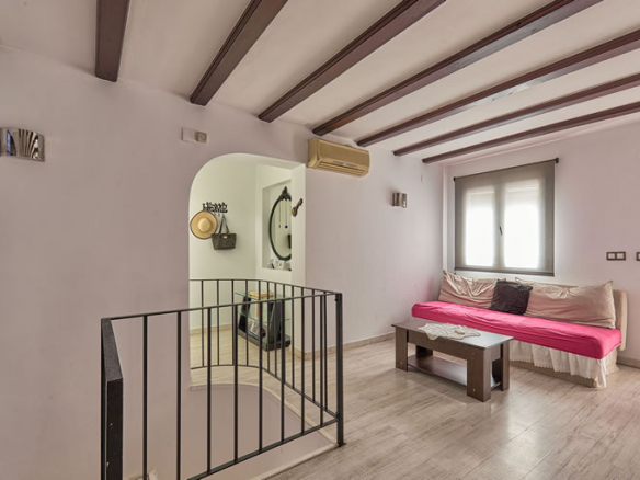One floor serves as a completely separate apartment space with 2 bedrooms and a bathroom, with a private terrace, a log burner and hot / cold air-conditioning units in the living space.