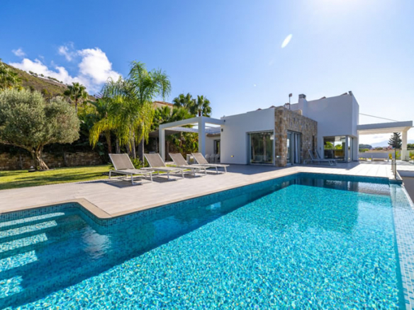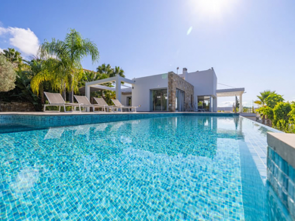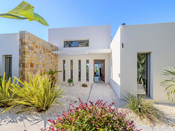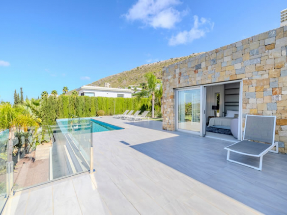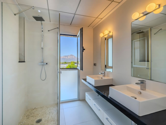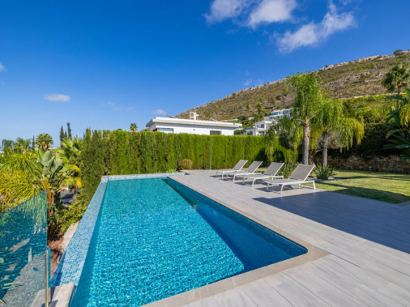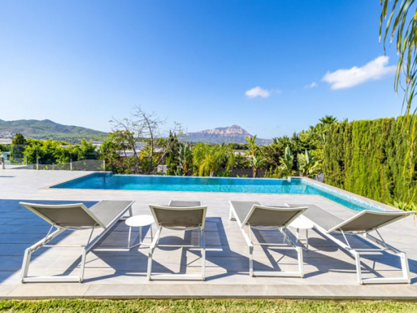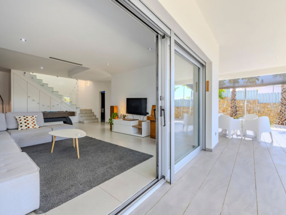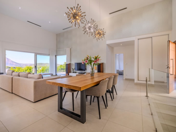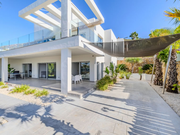This striking modern 5 bedroom villa combines clean architectural design with comfort and seamless indoor-outdoor living. It enjoys amazing panoramic views of Benitachell, the Montgó and Javea and is a short distance to the beach and amenities.