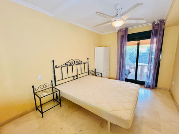Ground floor apartment, south facing, 1 double bedroom and 1 bathroom, American style kitchen, lounge and dining room with access to the large terrace covered and open, air conditioning hot and cold, under floor heating, located in a well maintained complex with communal indoor and outdoor swimming pool, gymnasium, sauna. Within walking distance to all amenities.