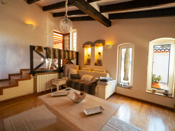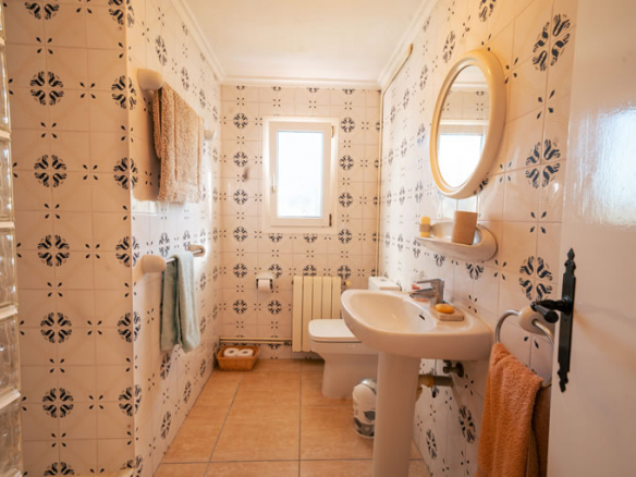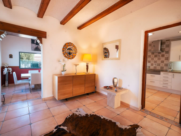 The house offers 465 m² built over two floors and was, like all homes in La Lluca, constructed to a high standard. From the moment you enter, the layout feels logical and calm. A central hallway connects to the main living room, which flows naturally into what was originally the naya. This space has been enclosed and integrated into the living area, creating a bright, generous room that works equally well in summer and winter.