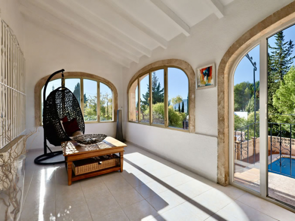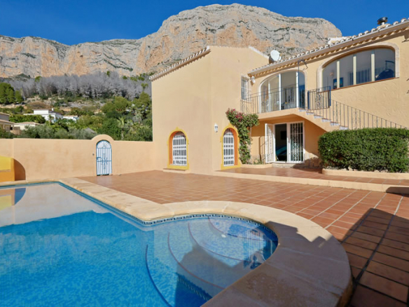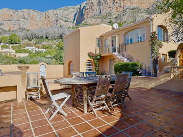Outside, the villa boasts a Mediterranean garden, swimming pool, barbecue area and several outdoor ambiences designed for relaxation and entertaining, all enjoying open views of the impressive Montgó mountain.