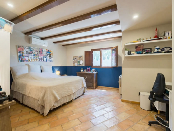 The exterior is a true Mediterranean retreat. South-facing terraces provide all-day sun, while shaded areas invite relaxation. The elegant 10 × 5-meter private pool integrates seamlessly into the mature garden, which features an automatic irrigation system and is bordered by cypress trees to ensure complete privacy. Additionally, there is a separate space with multiple possible uses.