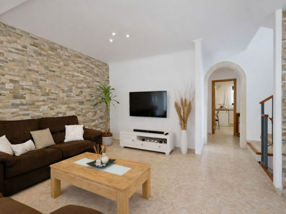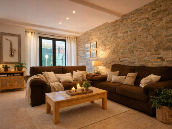 The home stands out for its excellent layout, where space, light and comfort flow naturally across every level. On the main floor, a spacious living-dining area opens directly onto the exterior, creating a seamless connection with the impressive 35 m² terrace — perfect for summer dinners, sunny breakfasts or relaxed evenings outdoors. The kitchen is independent, functional and well-organised, and this level also includes a double bedroom and a full bathroom.