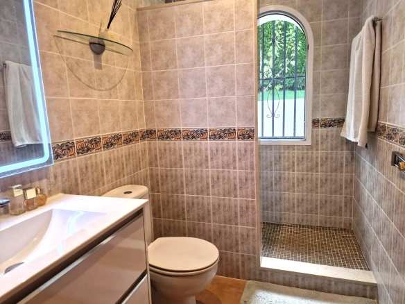Features: Close to the beach & amenities. Hot/cold air conditioning. Wood burner. Solar panels. Garage with electric car charger. Private pool & garden. Electric blinds. Double glazing. Fitted wardrobes. Electric entrance gate. Naya/covered terrace.