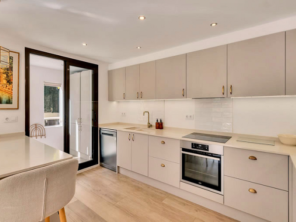With a beautifully renovated open plan kitchen offering convenient connection to the exterior areas the property also comes with a garage and storage room.