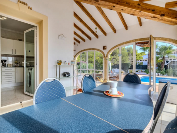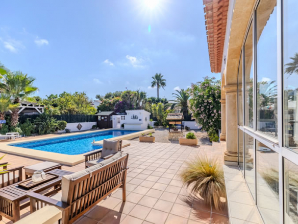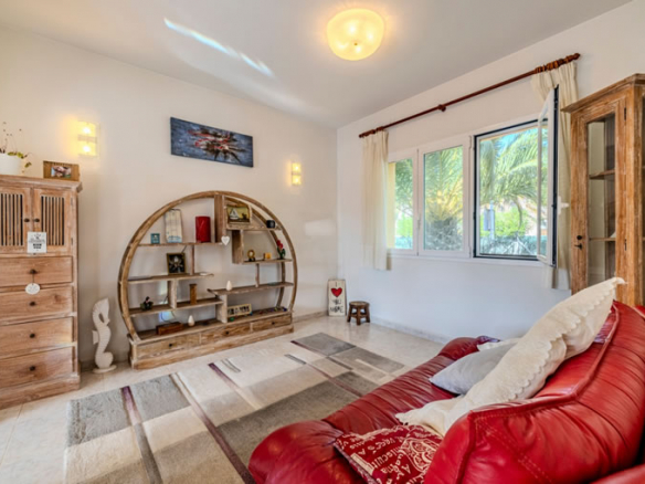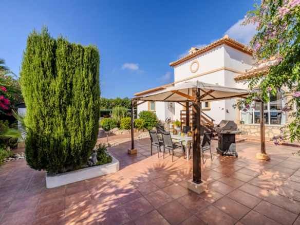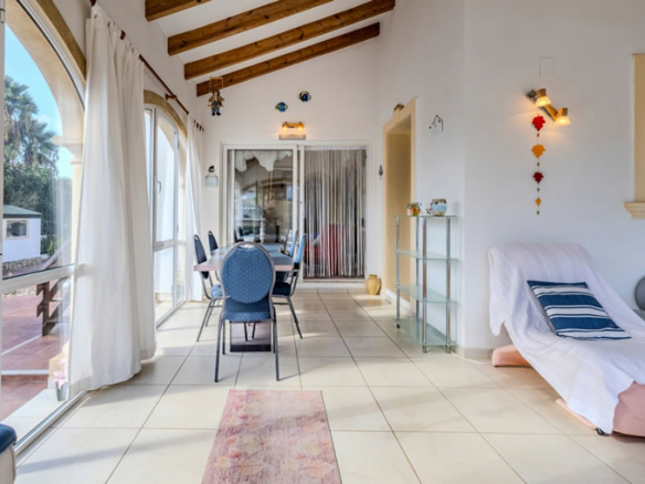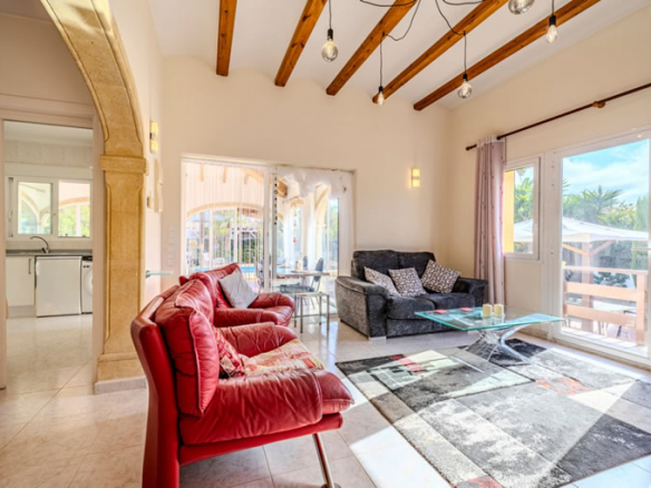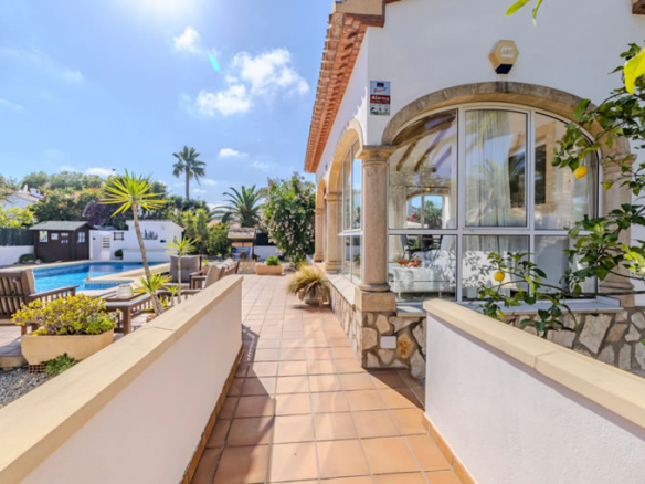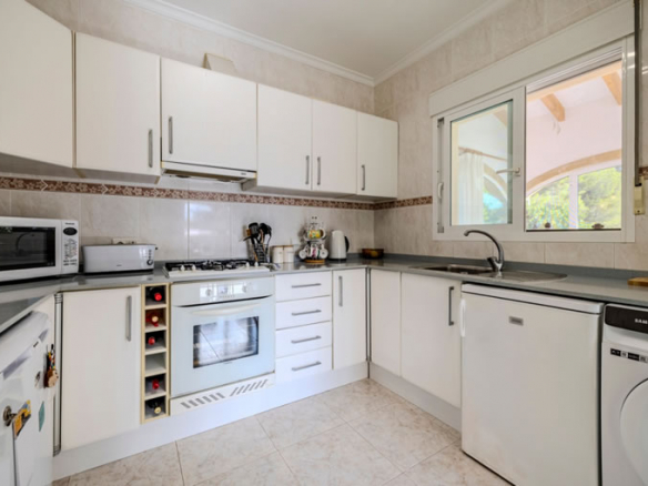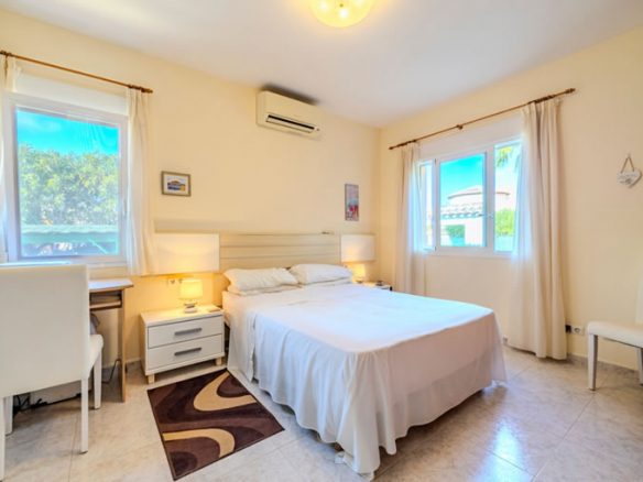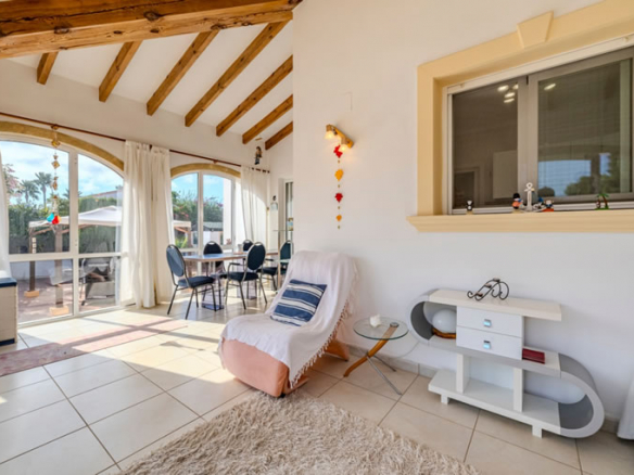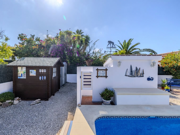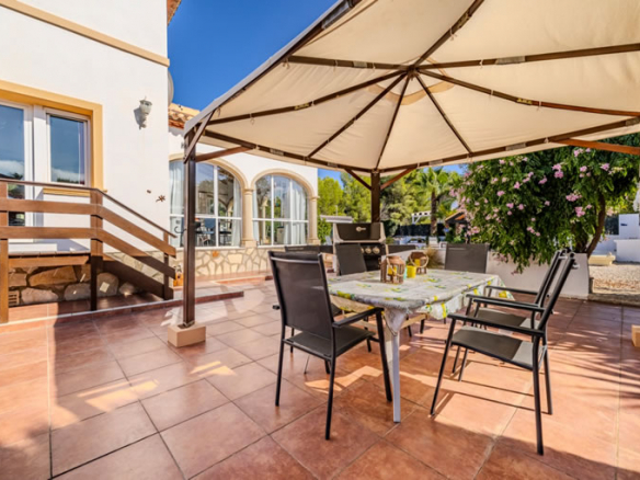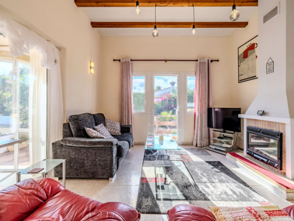 Suitable as a permanent home or holiday property, the villa sits on a large plot and includes three double bedrooms, one with an en-suite bathroom. A second bathroom serves the other bedrooms. There is an enclosed terrace that connects to the fully equipped kitchen, providing extra living space.