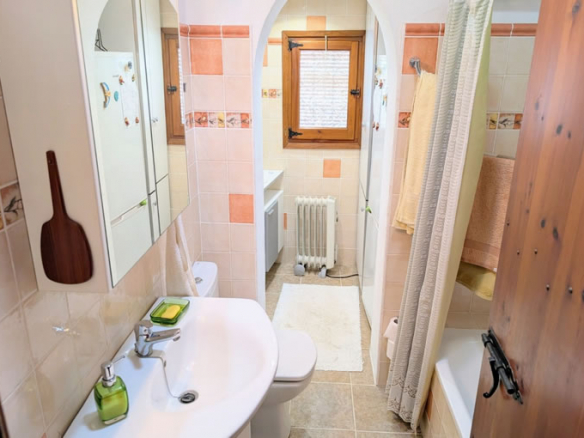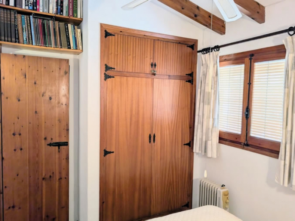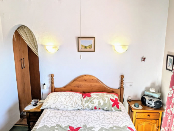 Through a door in the living room you enter the glazed naya, a south facing room with beautiful views over the expansive terrace and to the sea. Down five steps you are on the terrace, which is approximately 180m2, plenty of space for alfresco dining, sunbathing, relaxing and enjoying the all day sun, it could be possible to have a pool or hot tub but this would have to be confirmed by the town hall planning department. To the left of the villa there ís a large wooden shed/workshop and behind there is a barbecue terrace with granite table and worktop. Here you will also find a utility cupboard housing both the water heater and washing machine.